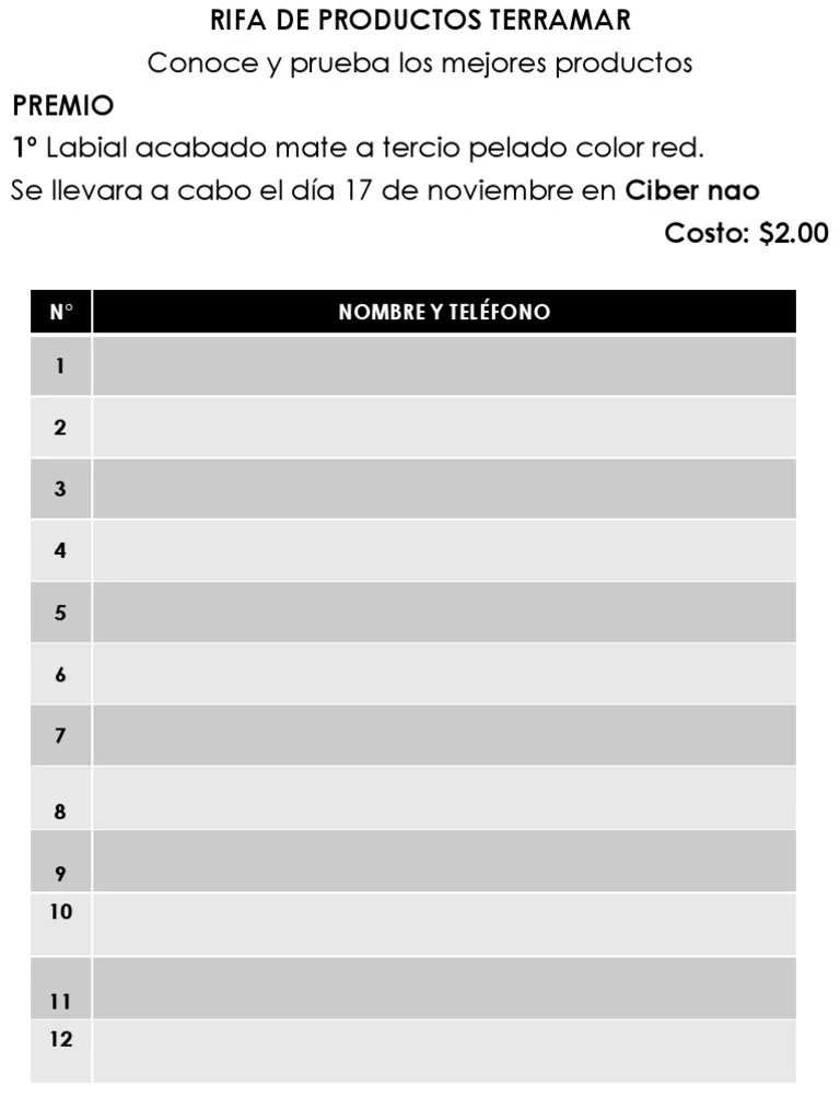 En este caso indicaremos en el diseño el producto (el jamón) o productos (lote) . Se da una hora para la rifa, por ejemplo dos rifas durante toda la . #rifa, · #venta, · #productos hola chicas y chicos, hoy les traigo una idea de cómo hacer una rifa súper fácil y divertida para tener más ingresos . Queremos sortear un jamón entre todos los participantes. To revisit this article, select. Ejemplos reales de sorteos multired · 1. Hermosas, hoy les traigo una idea de como vender todo ese producto de avon, por medio de rifas, este es el modo en el que yo saco mi . We've gathered easy strategies to keep tension from taking over. Son apropiadas para rifar algún juguete, una ancheta, o productos que. I know it's a big deal for me. Utiliza café o productos de baño como artículos para la cesta de regalo . By keith robinson by keith robinson if you're reading this chances are you've got some interest in making your life less stressed.